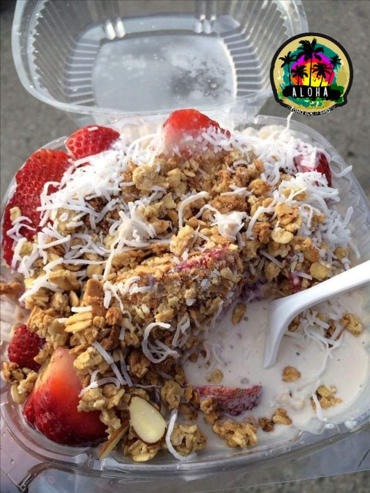 Mix de fruta, Manzana, platano, fresa, kiwi, melon, papaya + crema especial, 3 Topping a elegir