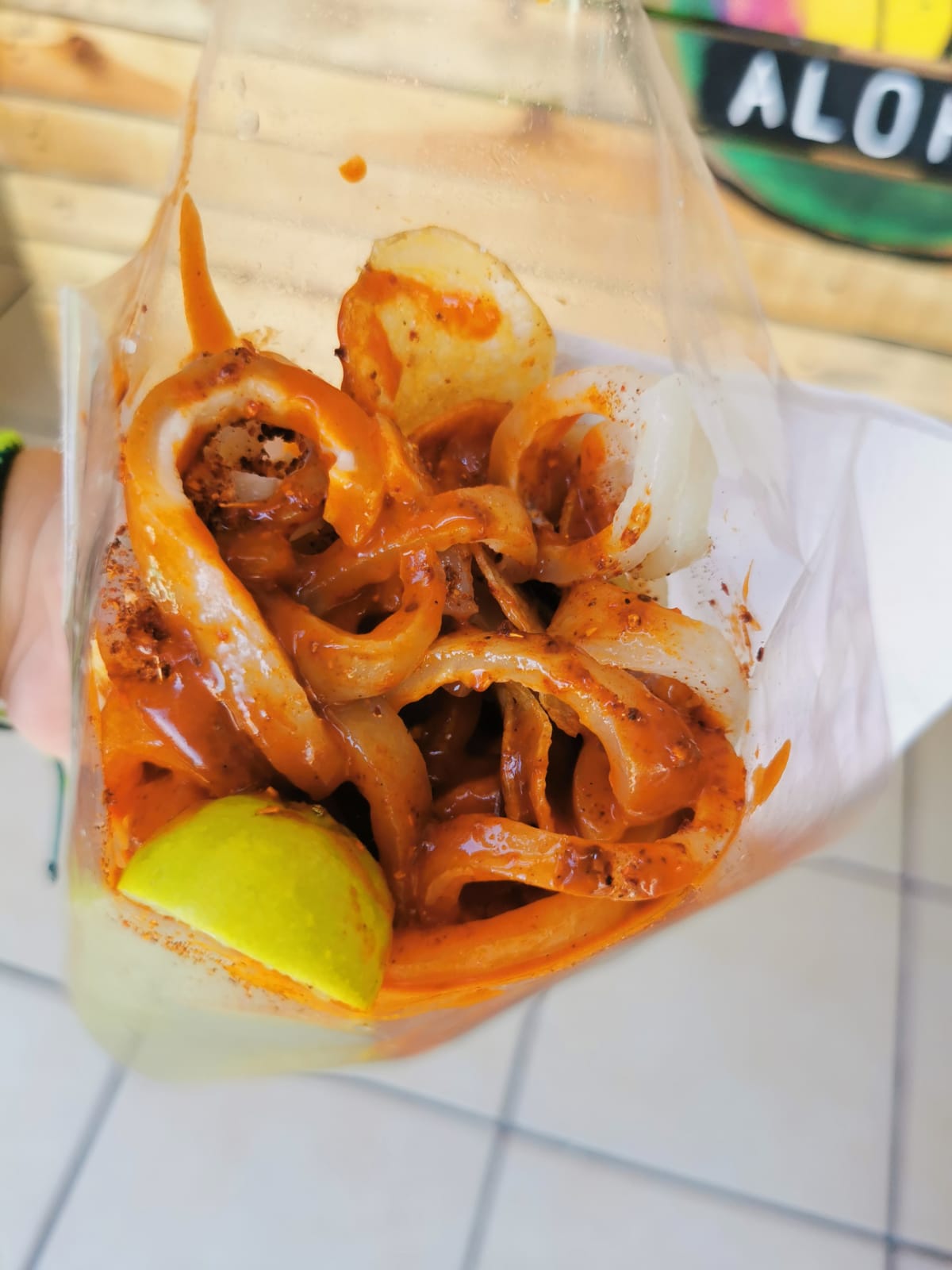 Chicharrones de rueda, limon, salsa y tajin