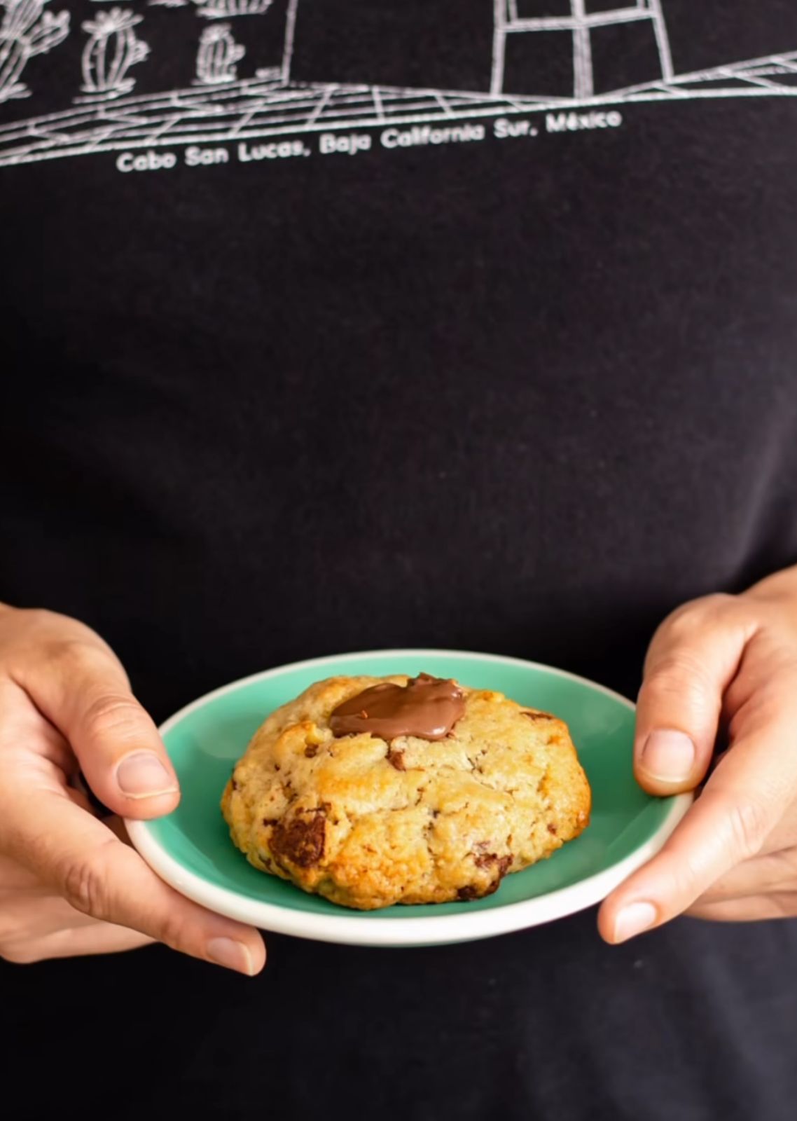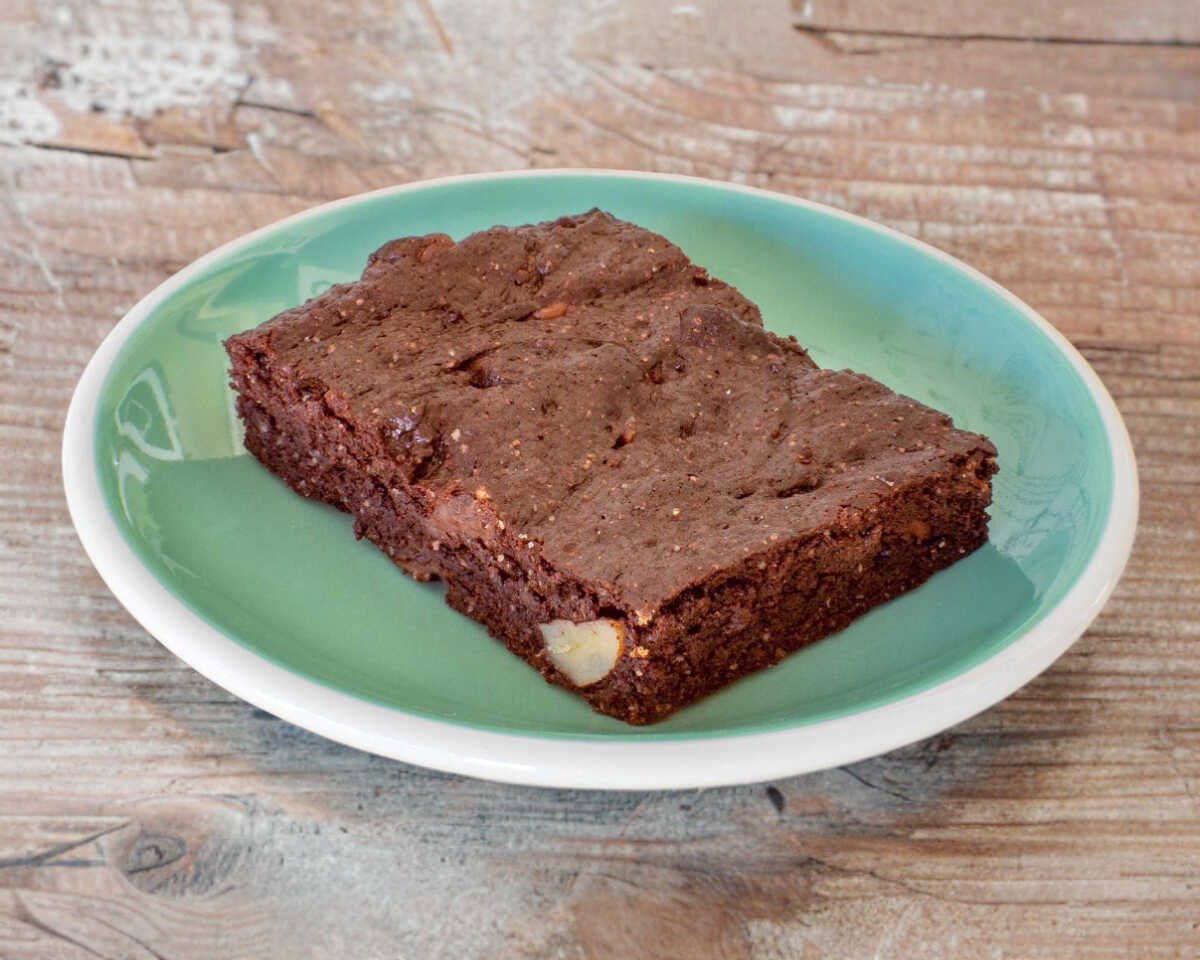 Delicioso brownie a base de harina de almendra con nuez y chispas de chocolate.