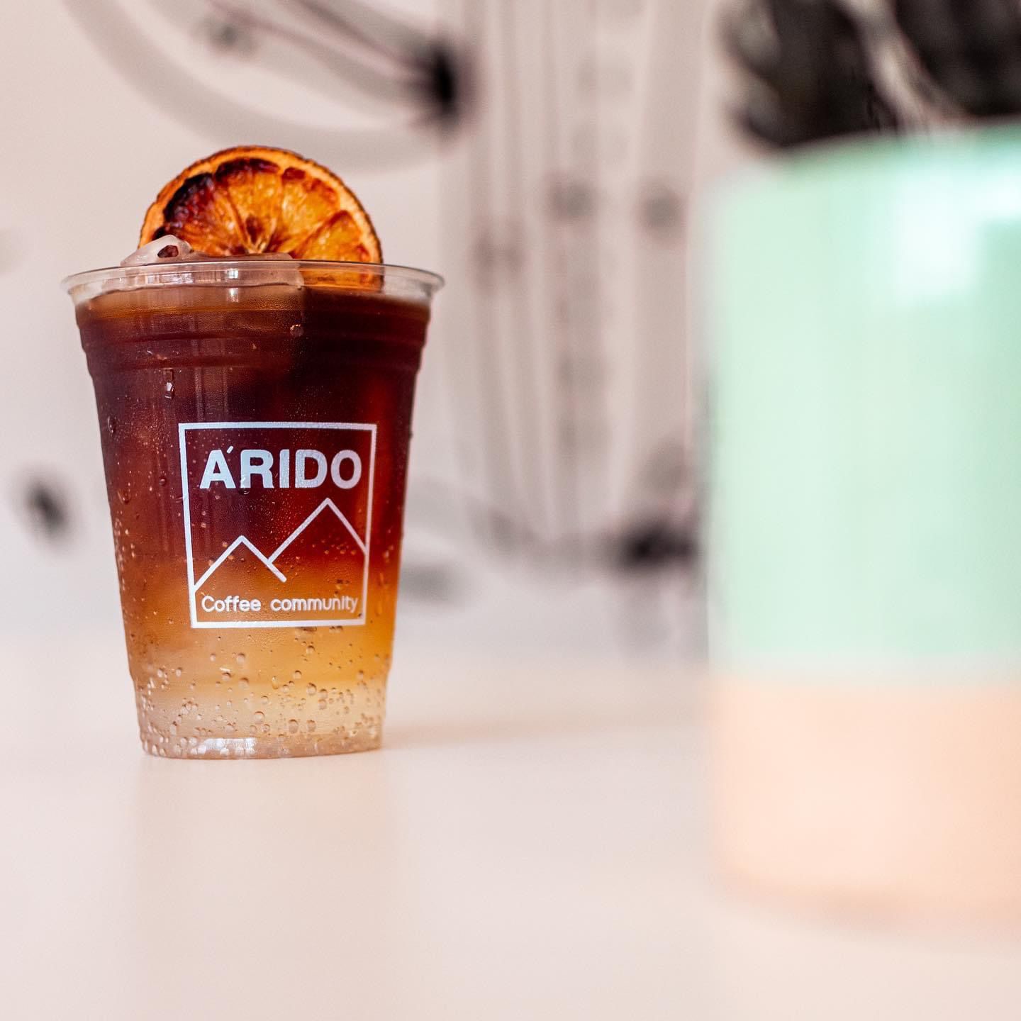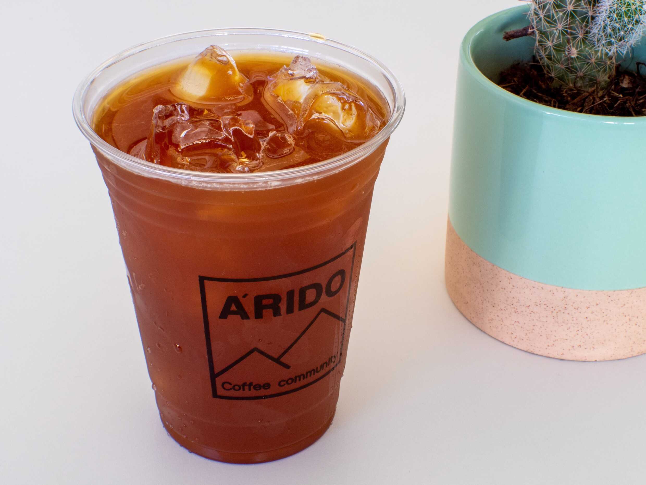 Combinación refrescante de cold brew con agua tónica y hielos (16 oz).