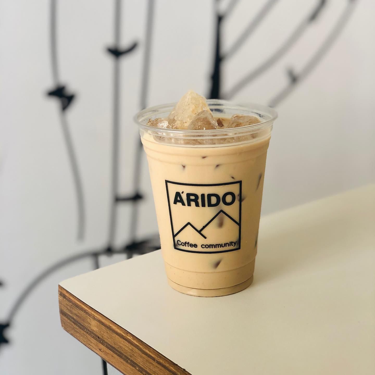 Shot de espresso mezclado con caramelo artesanal, leche y hielo molido (16 oz).