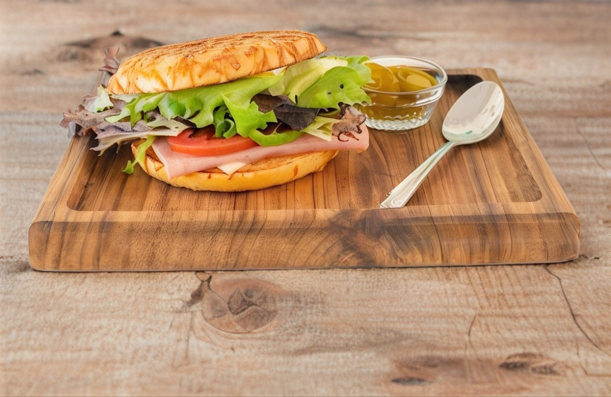 Jamón de pavo, queso suizo, lechuga, tomate, aguacate, mayonesa y mostaza.