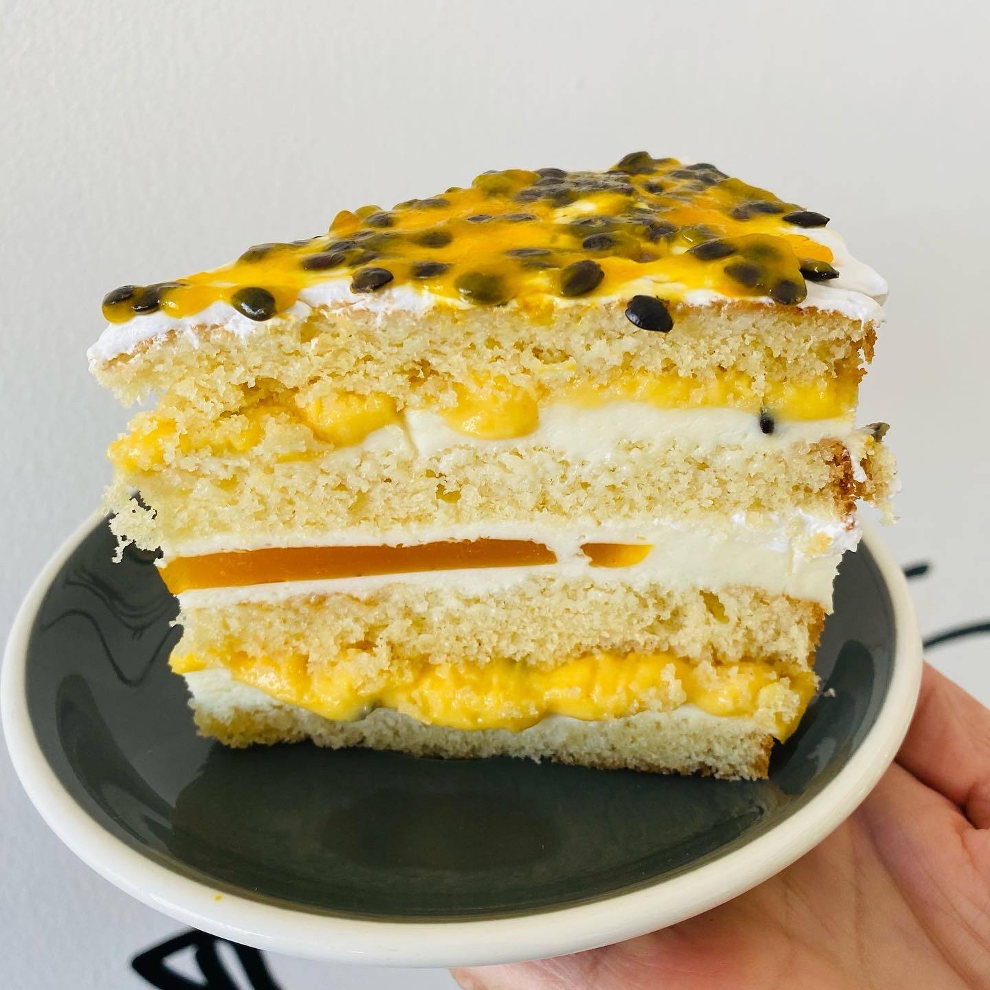 Especial de marzo. Rebanada de pastel de maracuyá, porción individual.