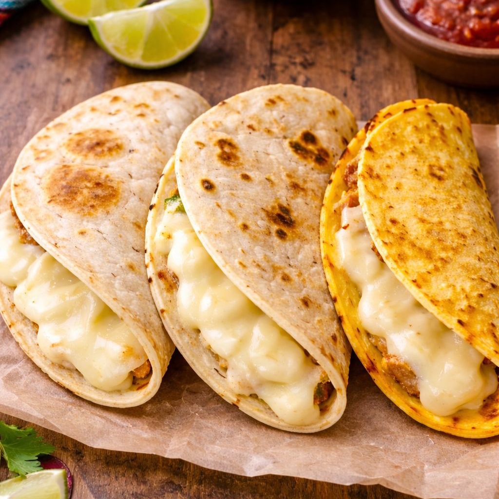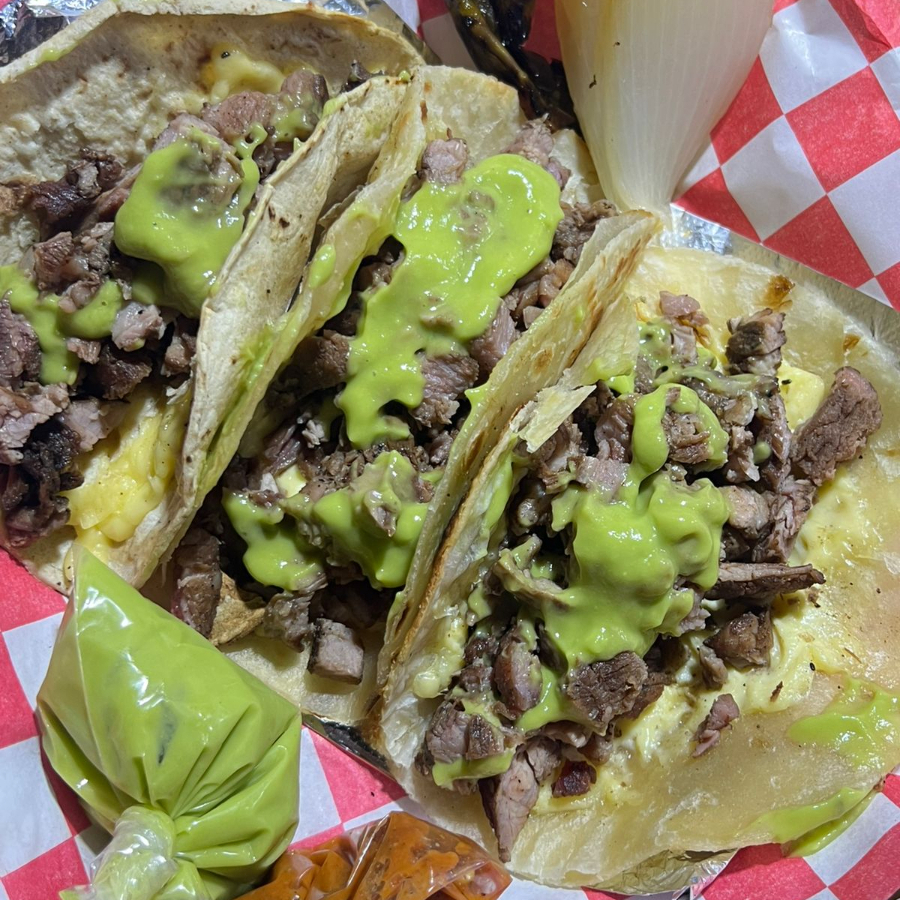 3 tacos, Guacamole, Salsa de la casa, Cebolla y chiles asados