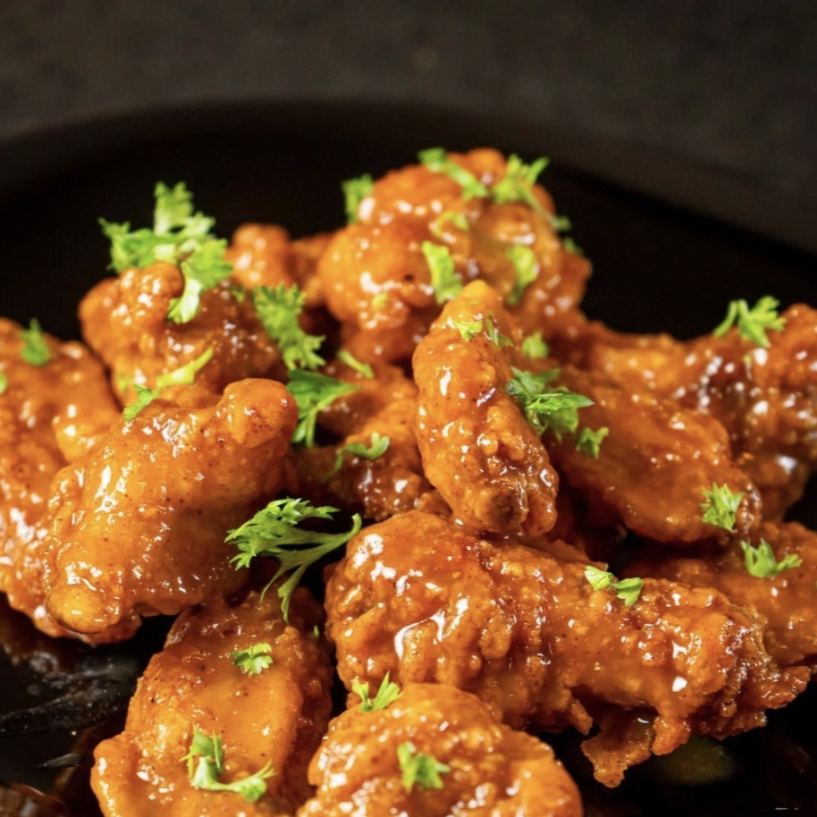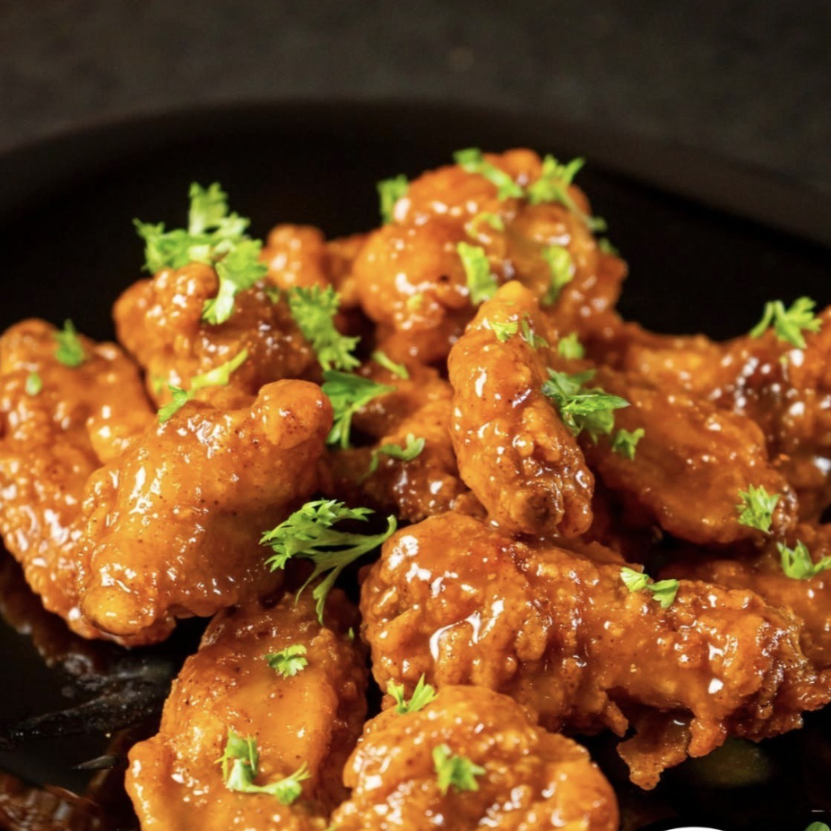300 g de papas gajo con tocino, queso cheddar y 150 g de boneless bañados en tu salsa favorita.