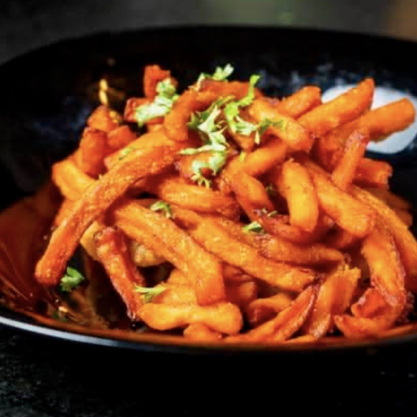 Papas de camote artesanales, suaves por dentro y crujientes por fuera, un toque dulce y delicioso. (200grs)