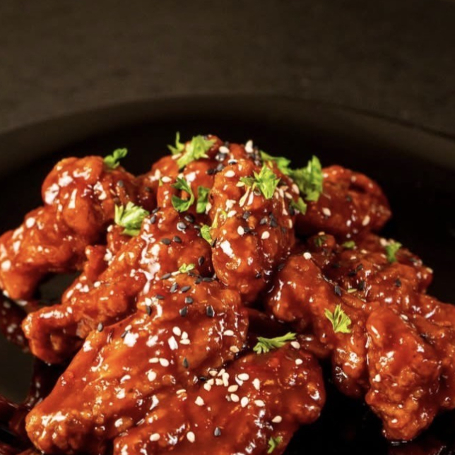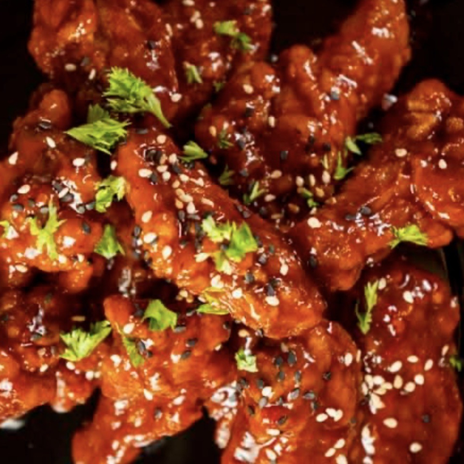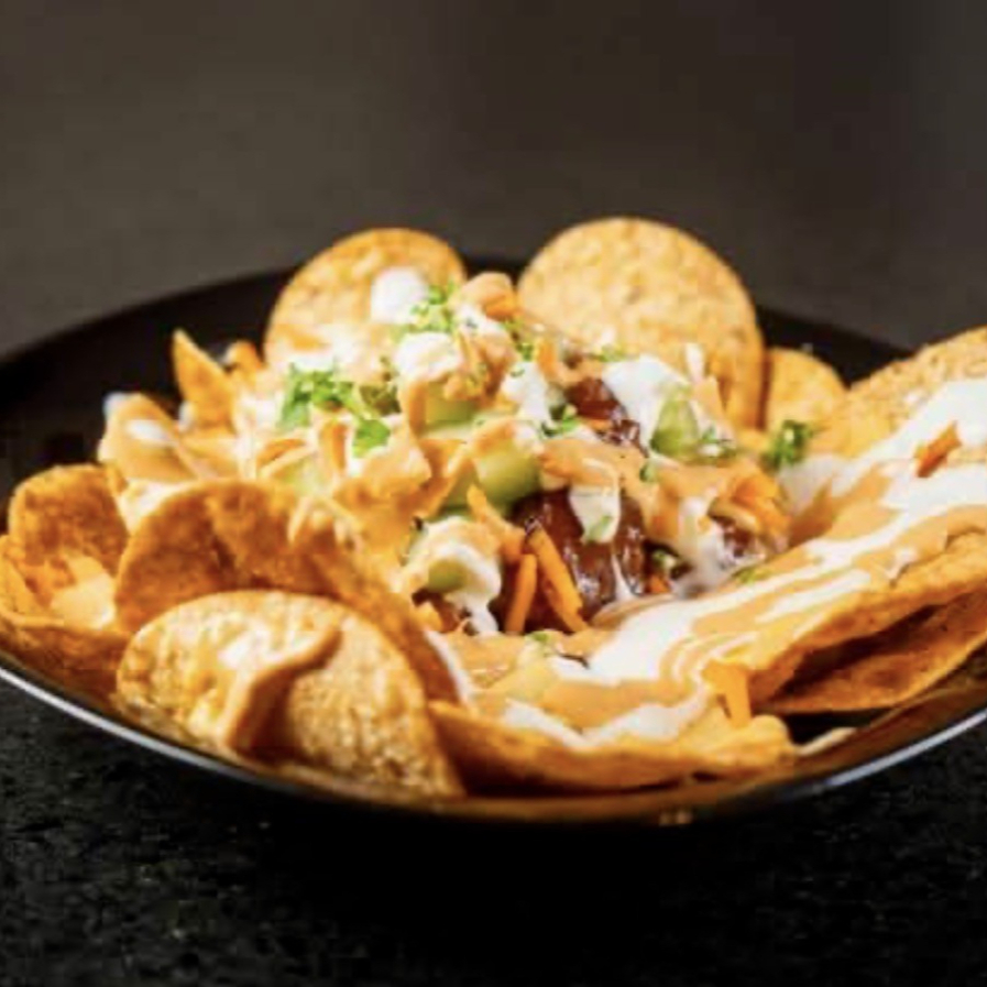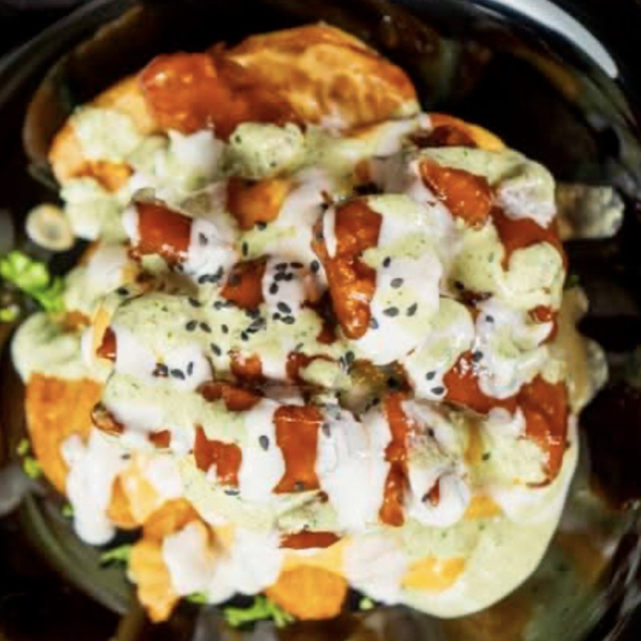 125 g de boneless crujientes sobre una base de tostitos, bañados en tu salsa favorita y acompañados de pepino, zanahoria, queso cheddar y aderezo ranch.