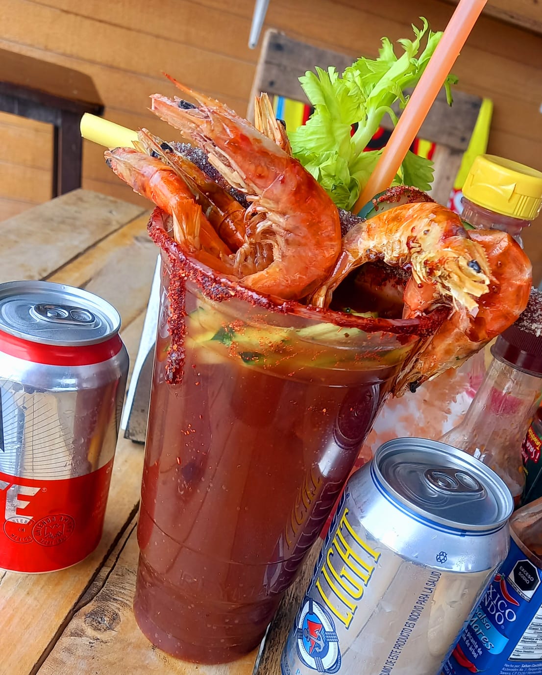 clamato preparado de 1L camaron cocido camron curtido callito caracol pulpo almeja