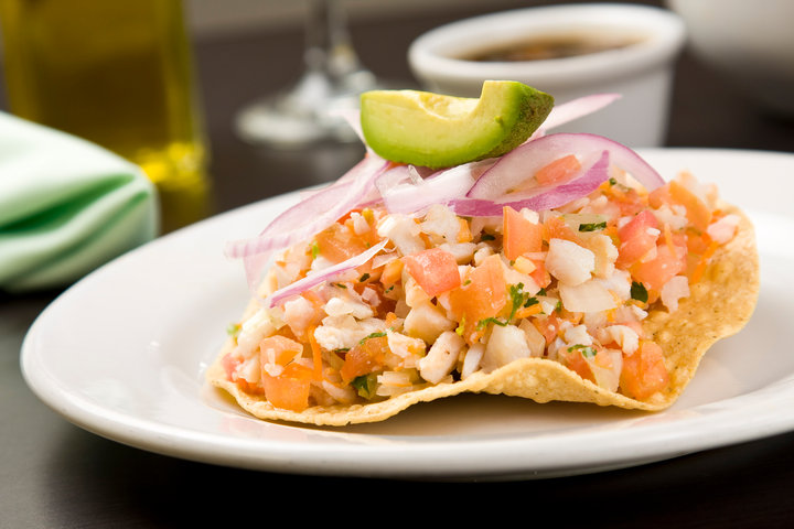 camaron curtido,atun,cebolla morada,cilantro y salsa de la casa