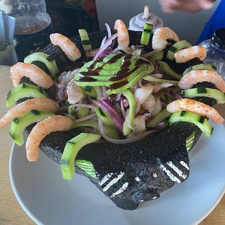 Mezcla de almeja. Camaron.pulpo y callo.cebolla. poblano acompanado de guacamole y 2 quesadillas de harina