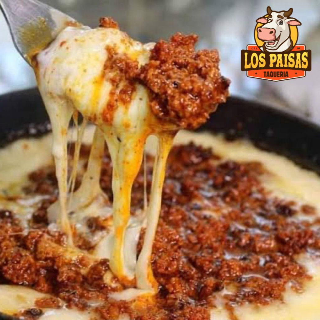 Queso derretido de alta calidad mezclado con chorizo al punto.