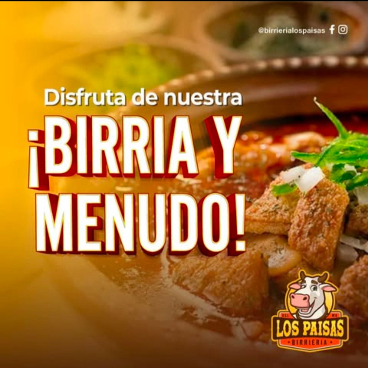 Plato generoso de birria de res en su jugo, acompañada de cebolla y cilantro.