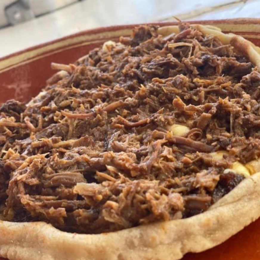 Especialidad de la casa con base de tortilla, carne, queso y un toque de manteca.