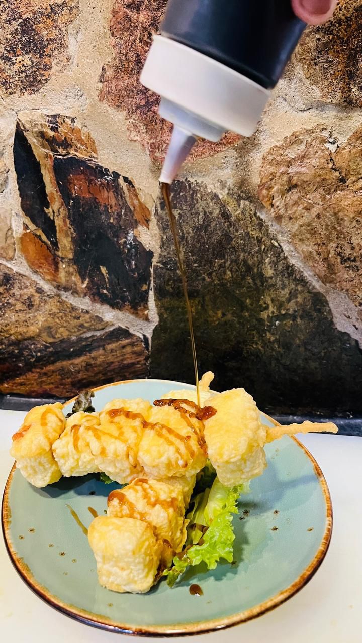 Queso tempura con salsa de anguila