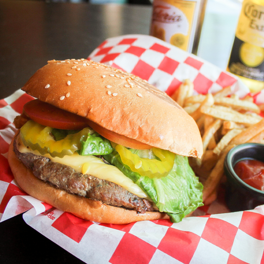 8OZ DE CARNE TOP SIRLOIN RECETA ORIGINAL, TOCINO, JALAPEÑO POPPERS, TOMATE, LECHUGA, CEBOLLA COCIDA Y PEPINILLOS