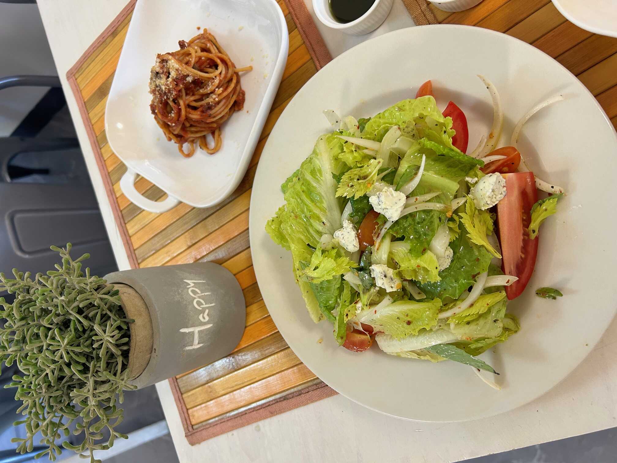 Media porción de ensalada para acompañar cualquier plato.
