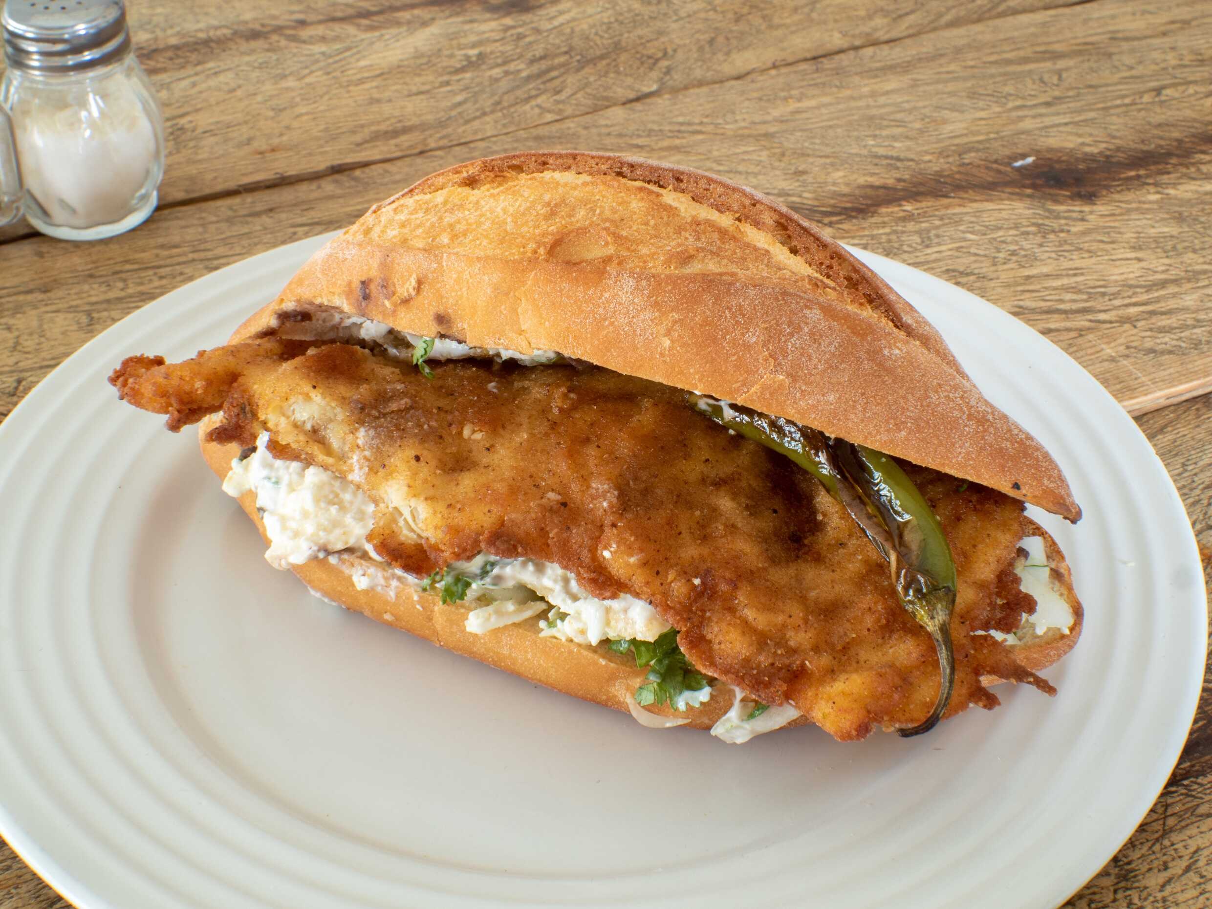 Bagel de milanesa a elegir con aderezo de mayonesa con chipotle.