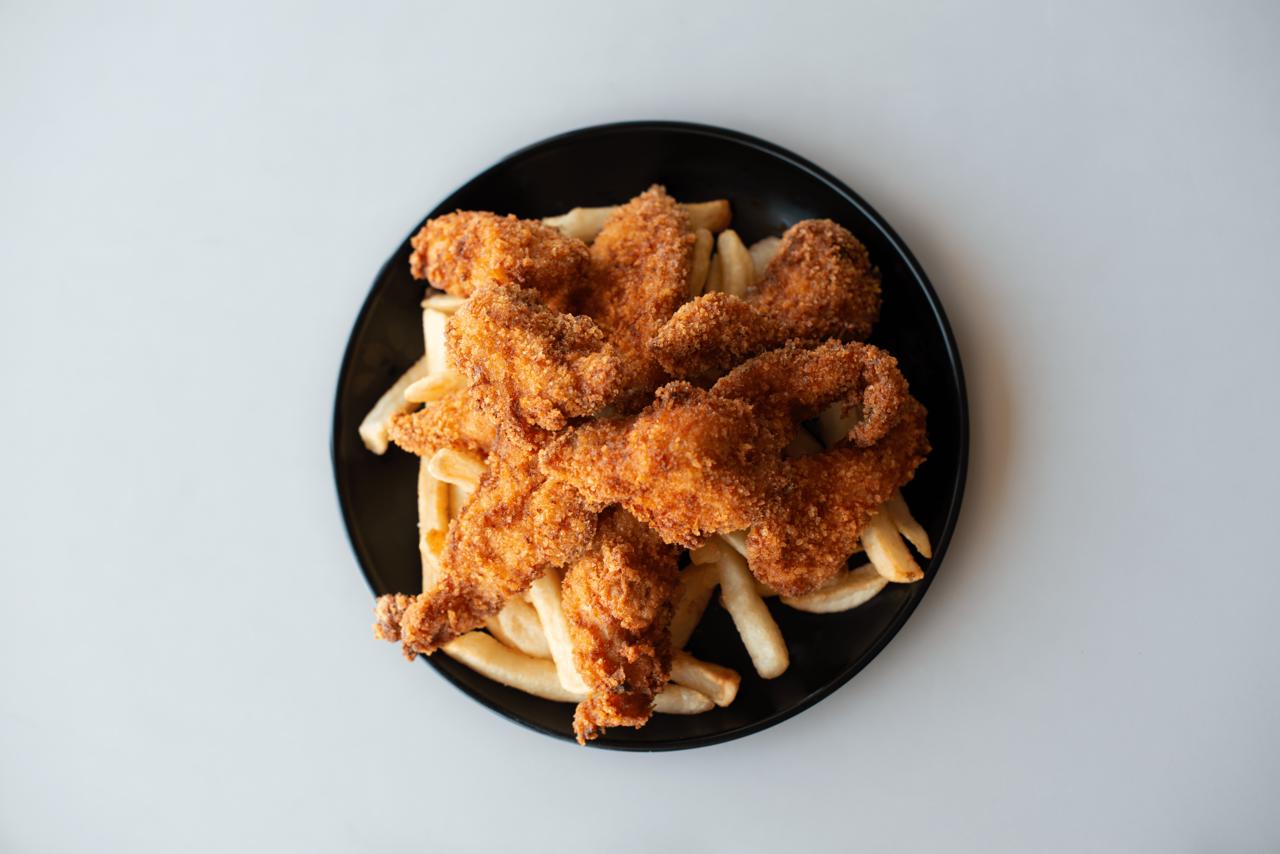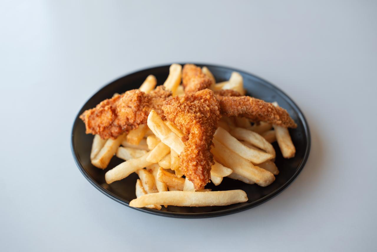 Tiras de pollo / Lechuga / Tomate / Cebolla / Queso para nachos *Incluye papas fritas