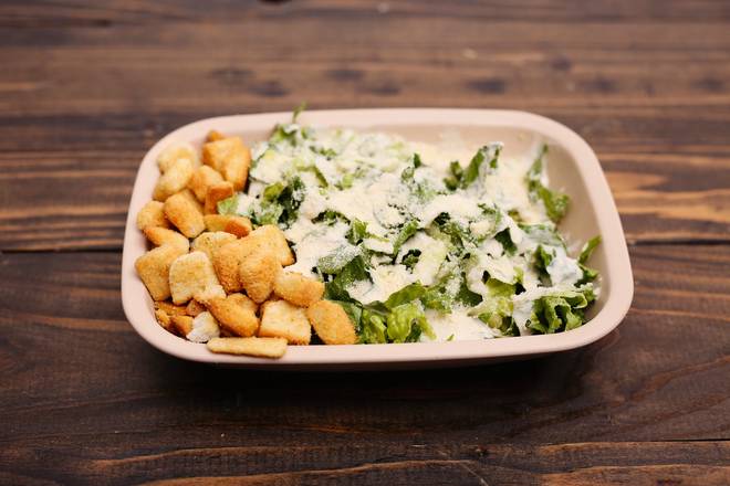 Cama de lechuga fresca, crutones, queso parmesano y el tradicional aderezo cesar