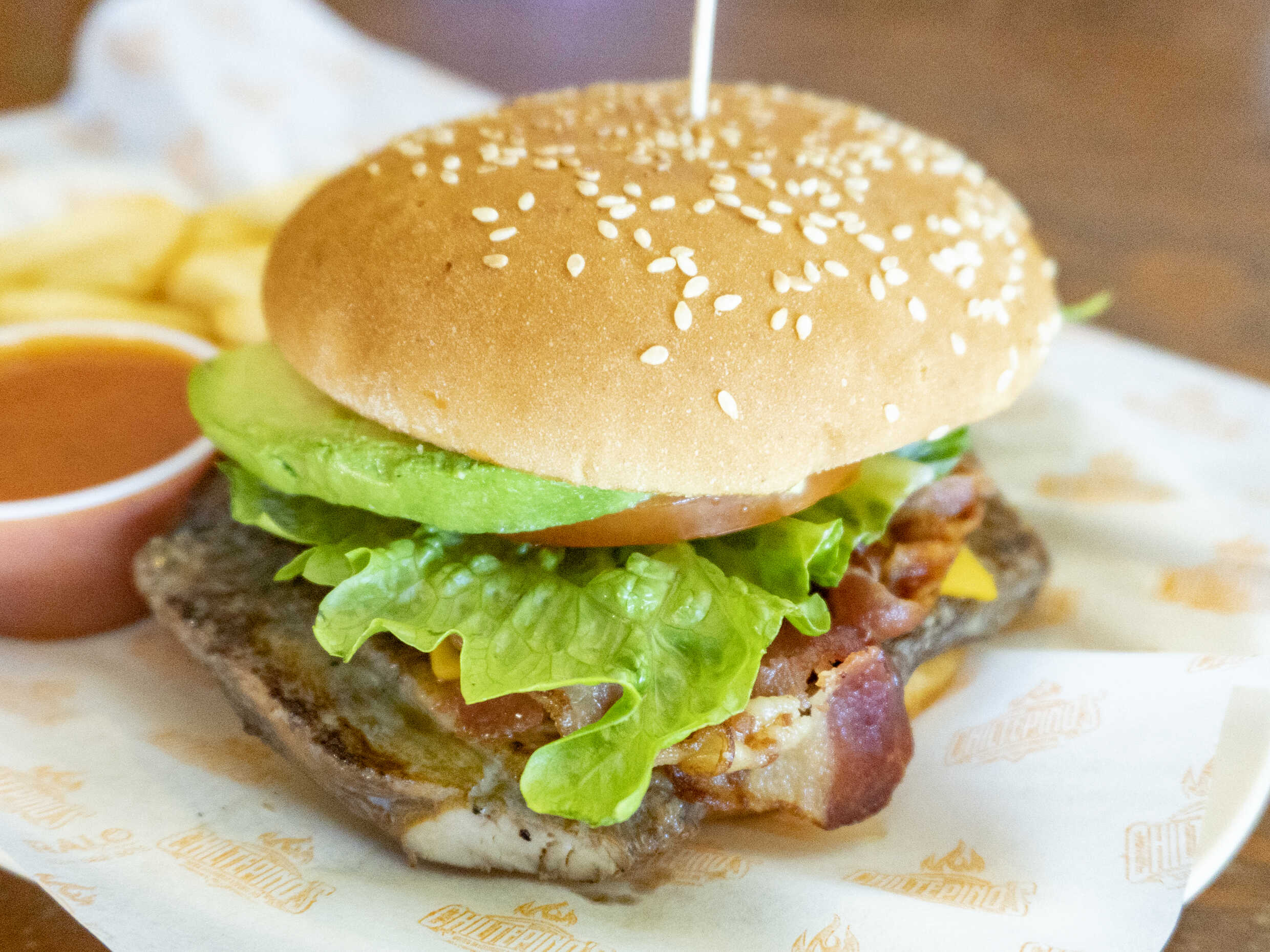 Carne de res (200gr) con queso manchego, tocino, lechuga, aguacate, cebolla caramelizada en una deliciosa mermelada dulce picosita de piloncillo con chiltepin. En un delicioso pan artesano, con un acompañamiento a elegir.