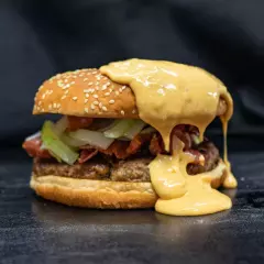Carne de res (200gr) con queso manchego, tocino, lechuga, aguacate, cebolla caramelizada en una deliciosa mermelada dulce picosita de piloncillo con chiltepin. En un delicioso pan artesano, con un acompañamiento a elegir.