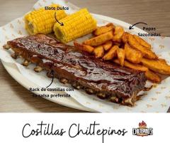 360 g de costillas de lechón bañados en salsa bbq con elote dulce y acompañamiento a elegir.