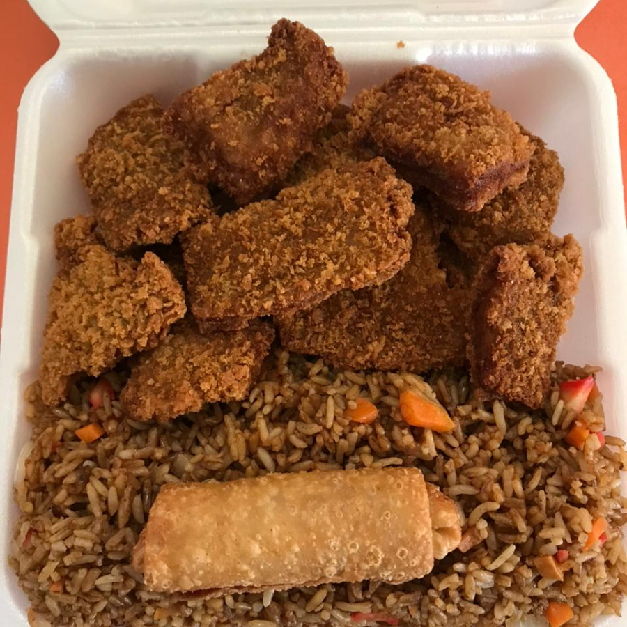 Filete Empanizado, Arroz Cantonés, Chun Kun