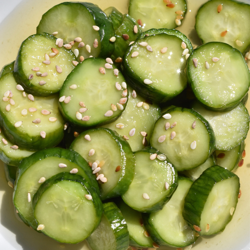 pepino persa, cebollin, marinado japones, vinagre de arroz