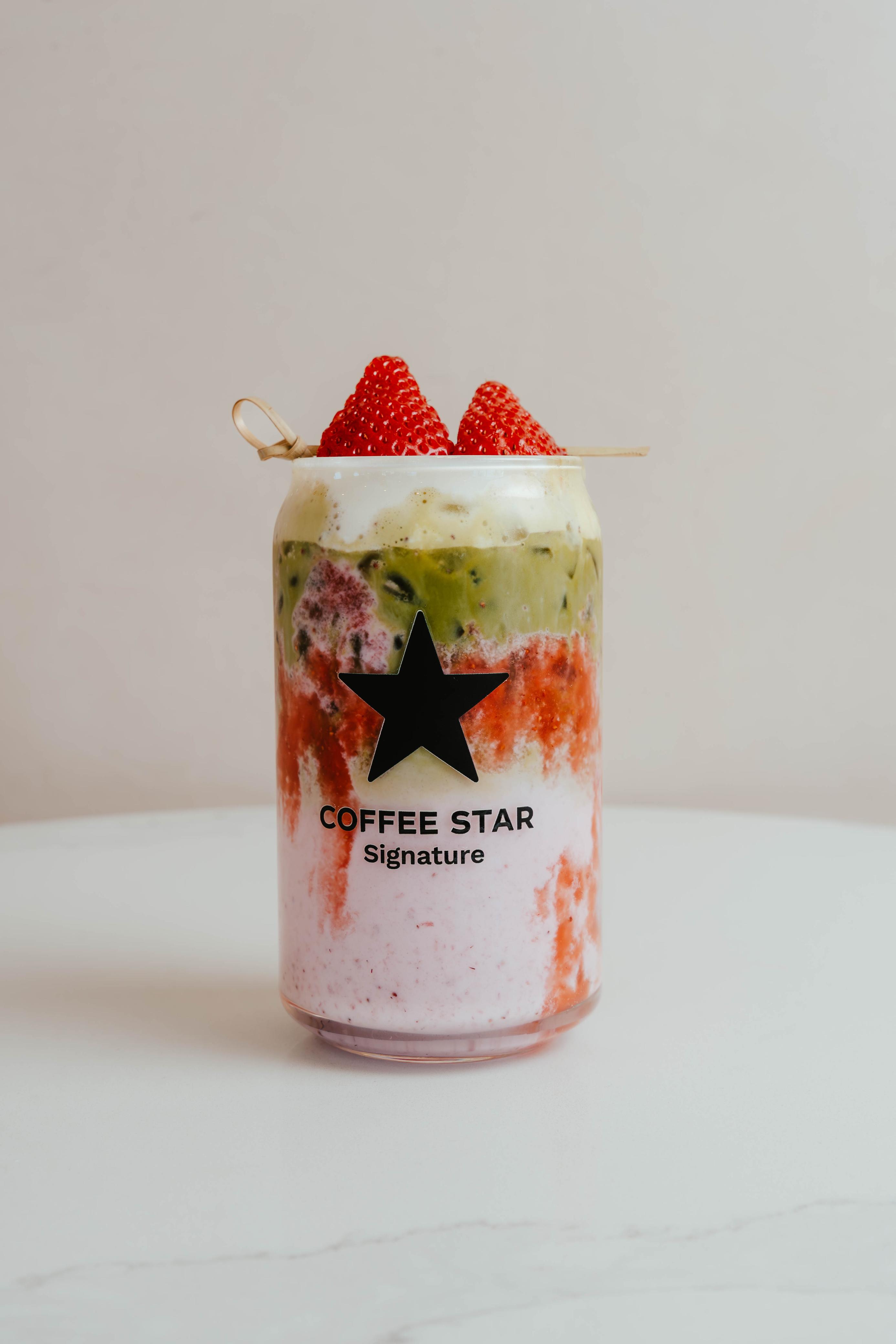 Bebida fria con Fresa natural, leche de tu elección y cold foam maple.