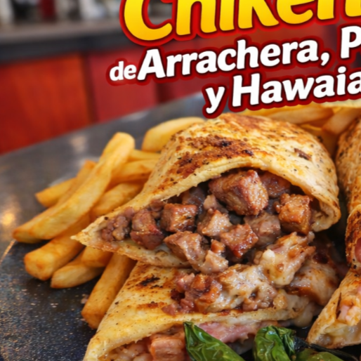 3 fajitas de pollo crujiente, lechuga, jitomate, cebolla, chile morron, pepinillos, jamòn, queso amarillo, chile toreado, aderezos, papas a la francesa.
