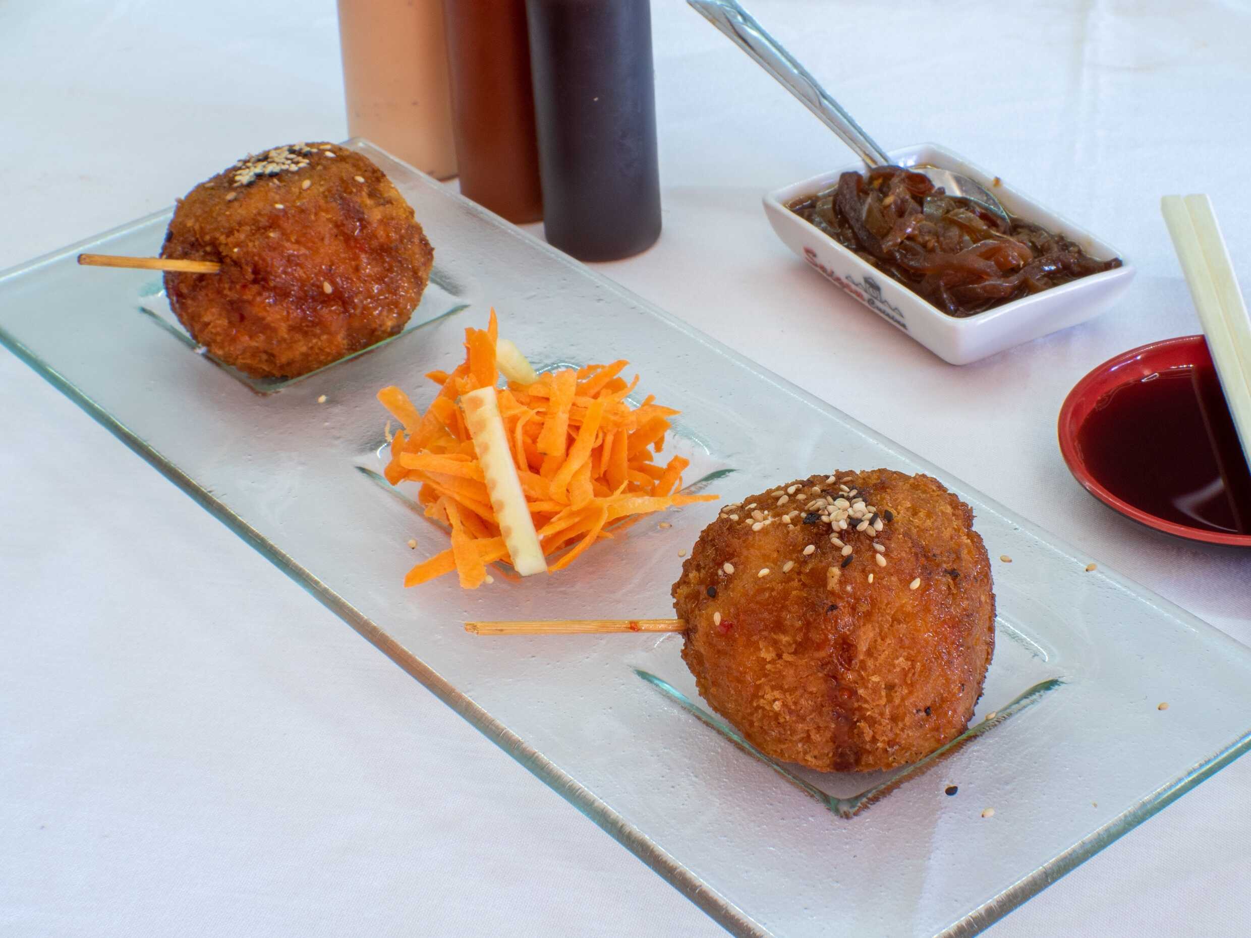 Por dentro camarón y queso crema, por fuera pulpo spicy crujiente.