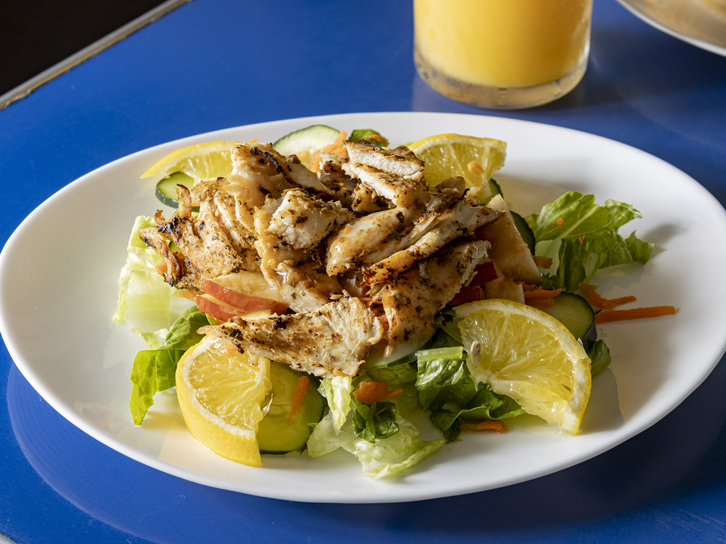 Lechuga, pepino, zanahoria, manzana, naranja, cebolla morada.