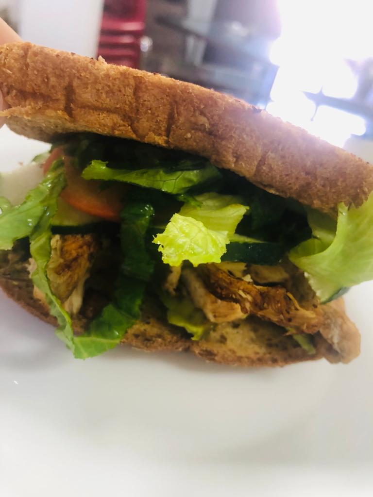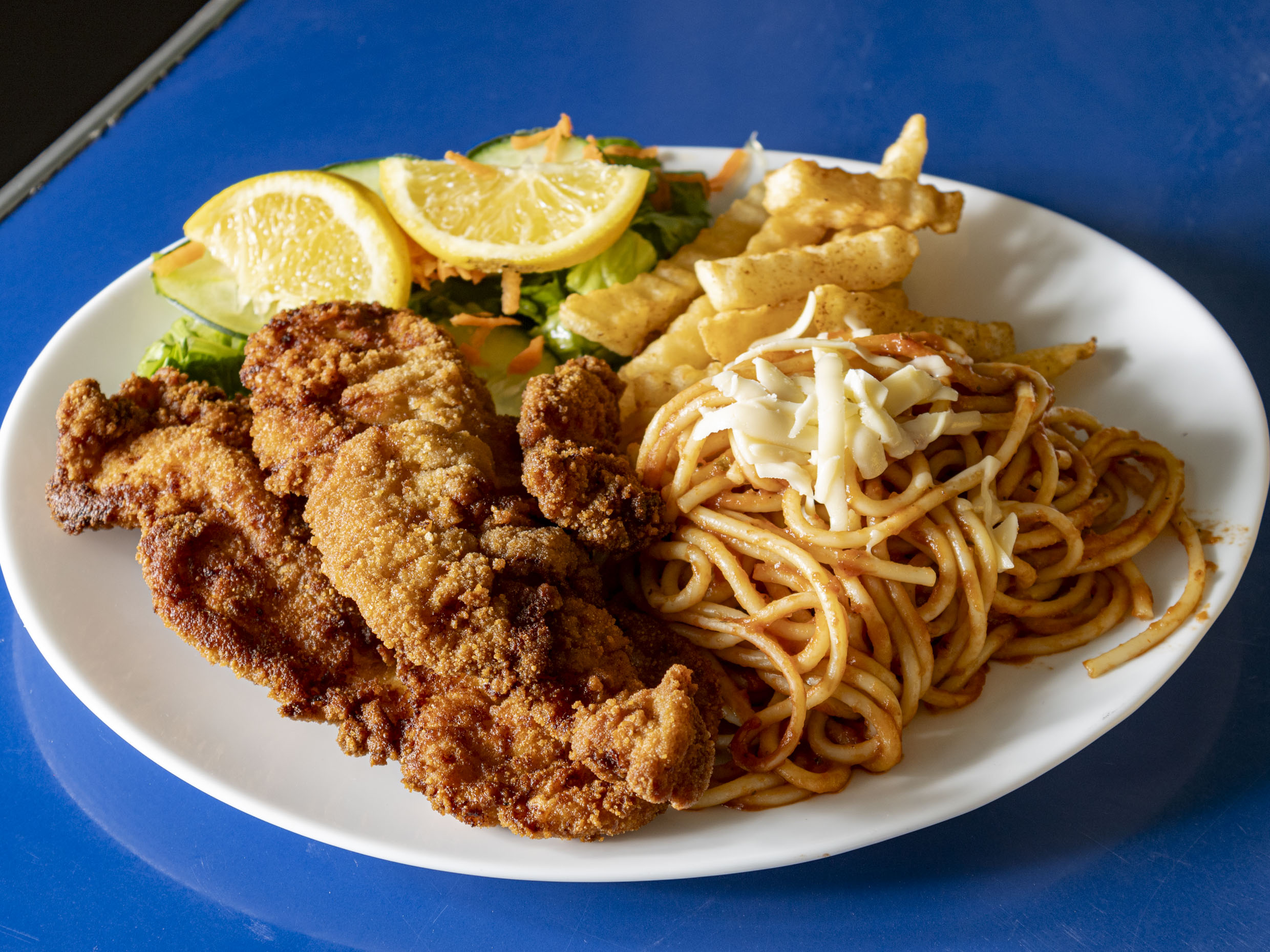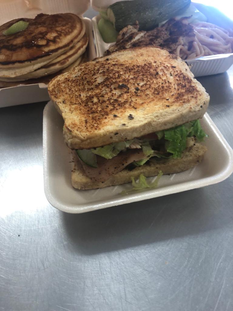 Piña, jamón, queso blanco, queso amarillo, lechuga y tomate.