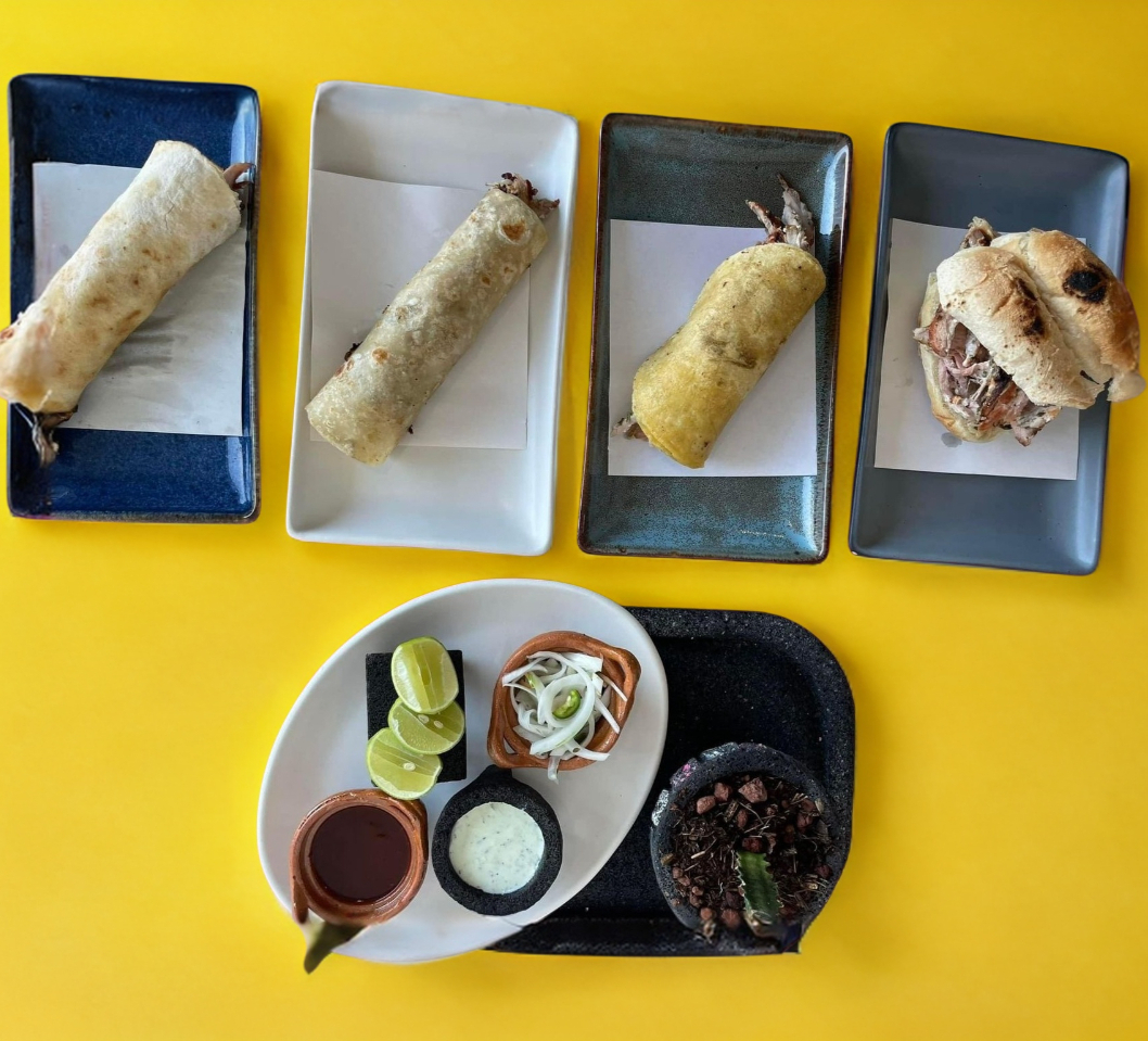Tortilla de Harina,Bistec de res, Tocino, Cebolla, Queso Asadero