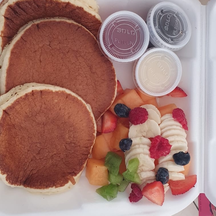 Orden sola de 3 piezas de Hot Cakes con lechera y miel maple por separado