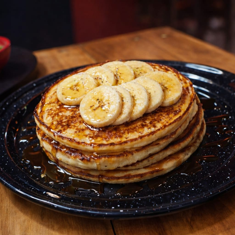 Hot cakes caseros esponjosos 🥞✨ con plátano y miel de piloncillo especiada 🍯🔥. 🔥 Dulces, calientitos y perfectos para darte un gusto.