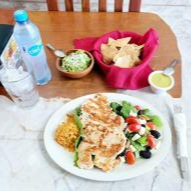 Suave omelette elaborado con huevos frescos, relleno de ingredientes al gusto como queso, jamón, champiñones, espinacas, jitomate o chile poblano, condimentado con sal, pimienta y orégano, acompañado de ensalada fresca.