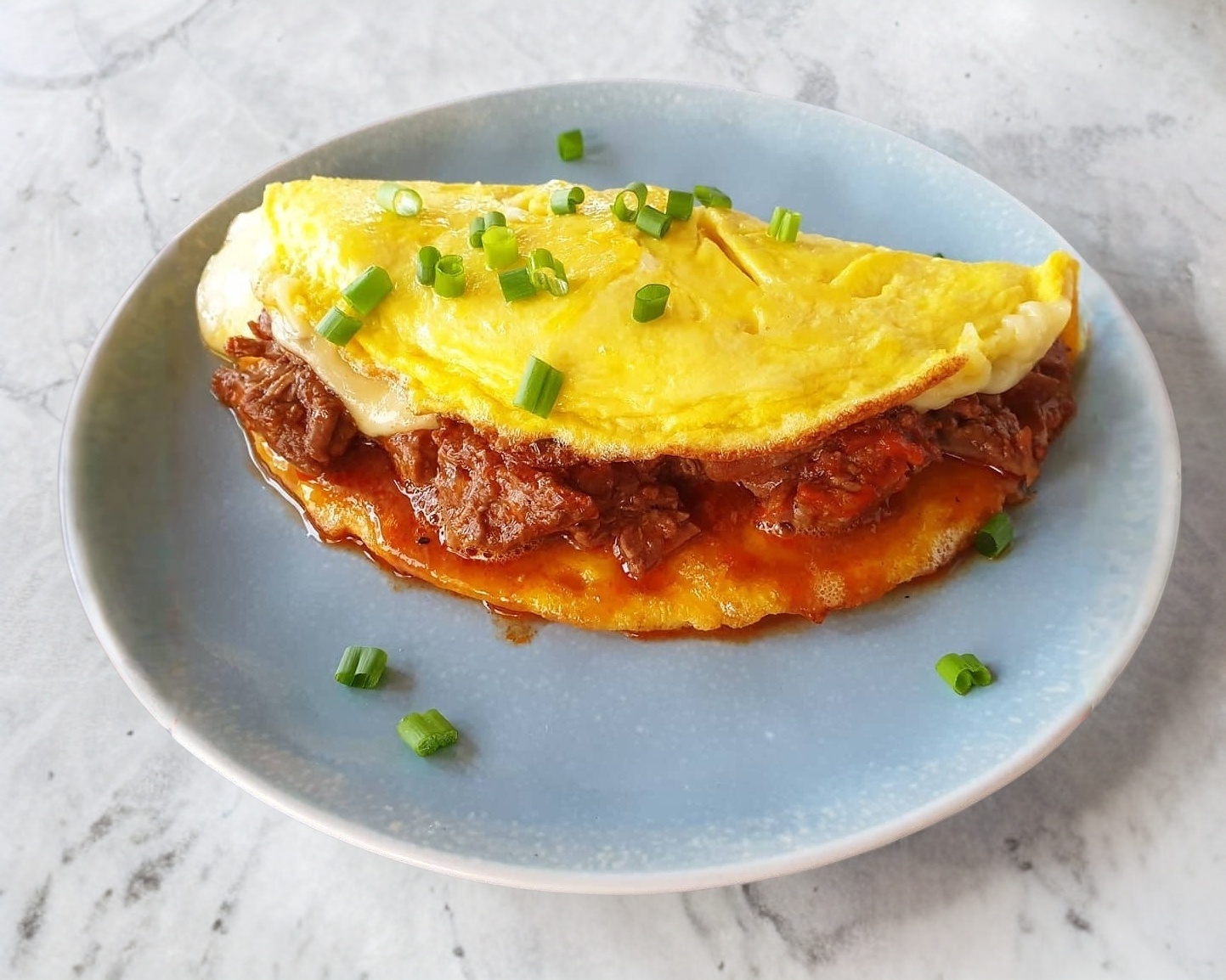 Con 1 ingrediente a escoger (jamón, salchicha, tocino, chorizo, champiñones o a la mexicana), incluye frijoles, arroz y agua del día.