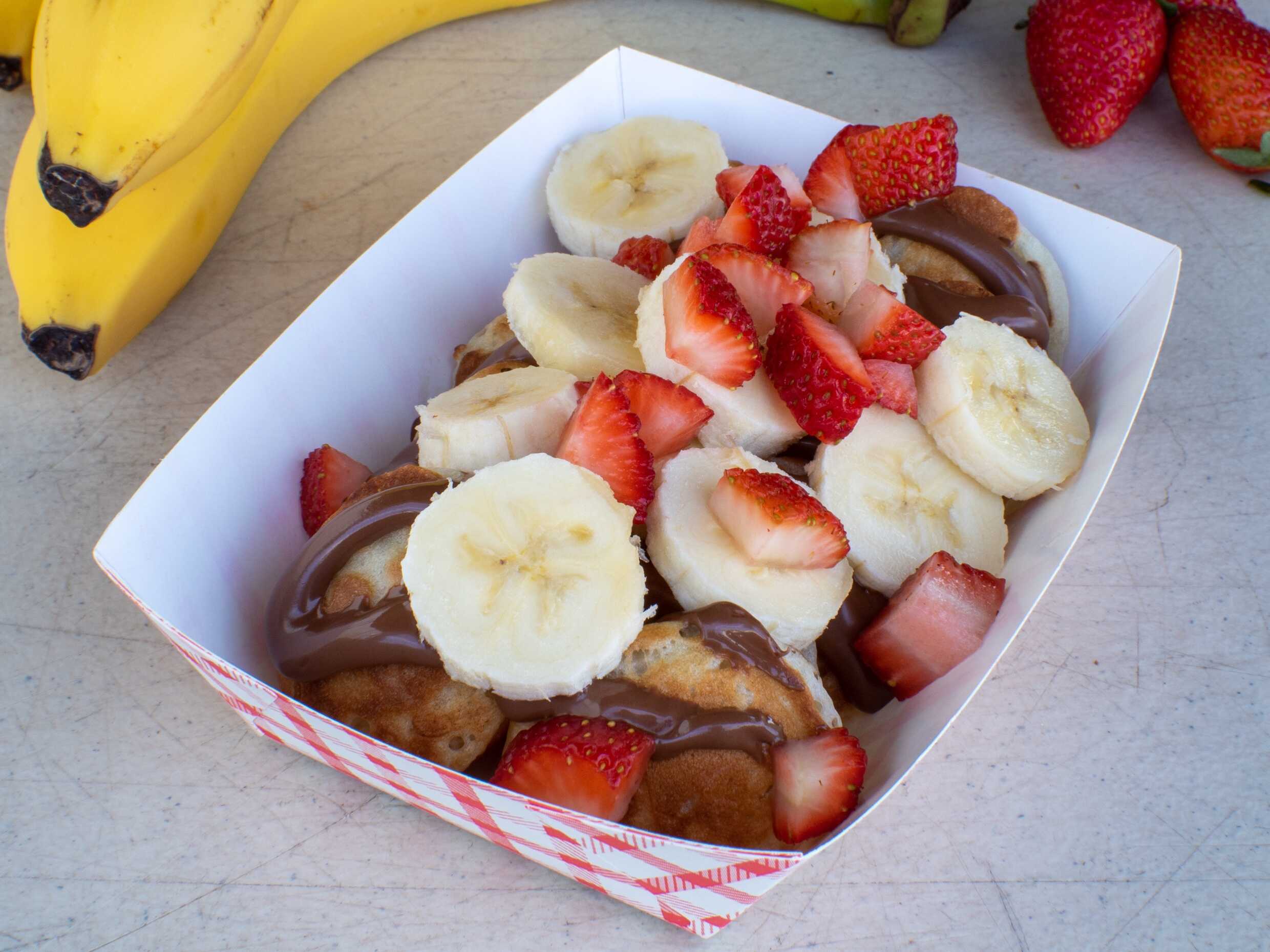 20 Piezas con crema de cacahuate, miel maple y plátano.