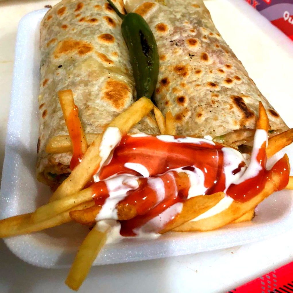 Quesadilla de carne asada acompañada con sus papas a la francesa