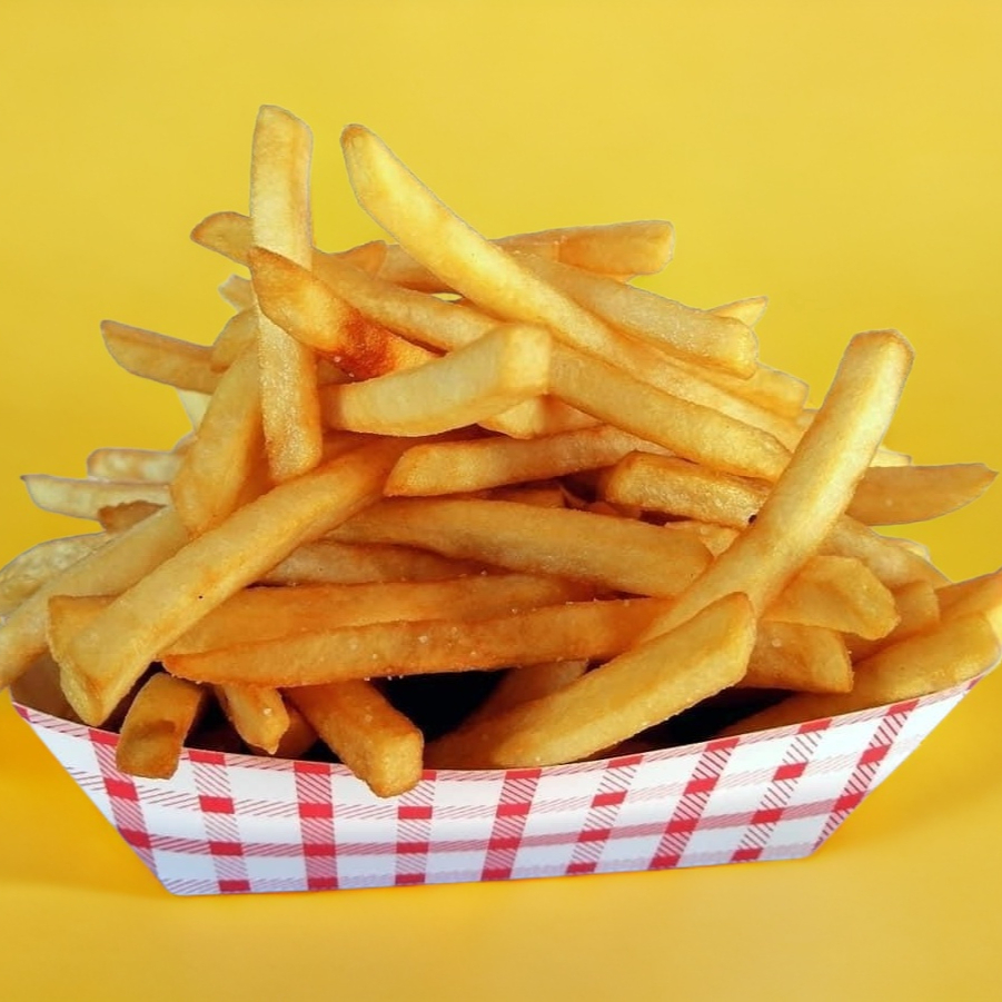300 gramos de pechuga de pollo en salsa Buffalo acompañados con papas, zanahorias, pepinos y aderezo especial