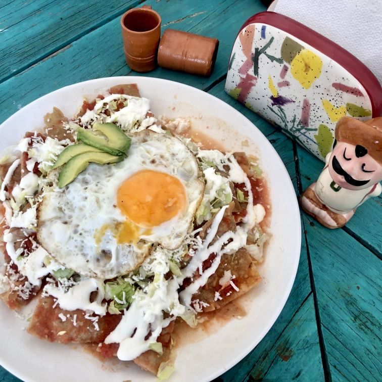 Totopos bañados en salsa a elegir, cubiertos de queso derretido, crema, lechuga y queso rayado