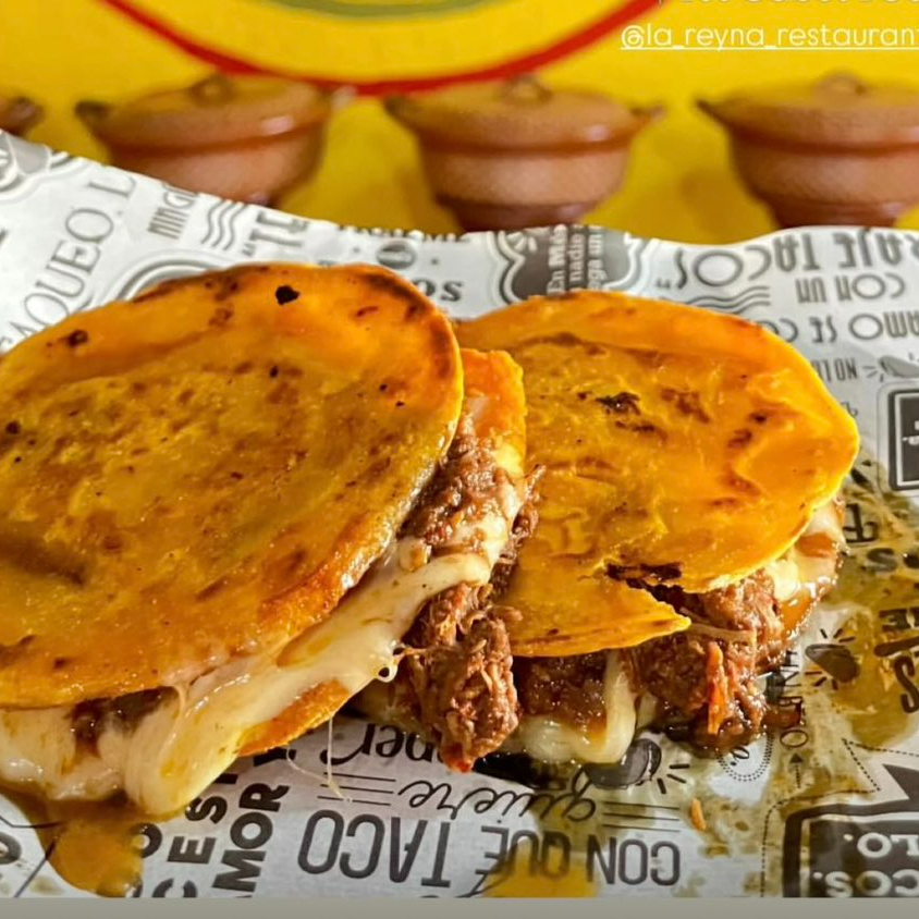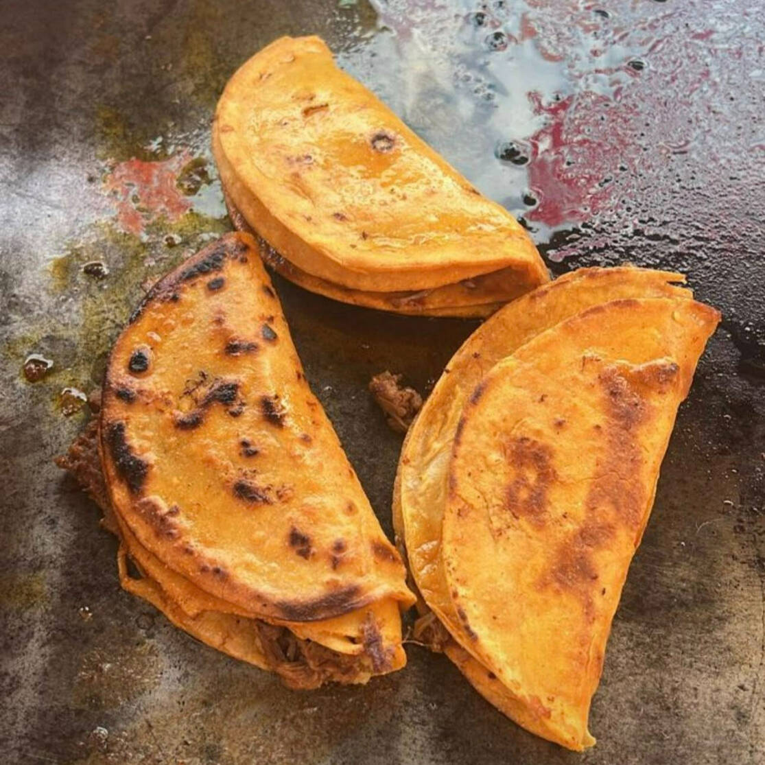 TORTILLA DORADITA RELLENA DE BIRRIA Y QUESO MANCHEGO