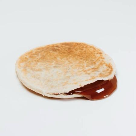Gordita de harina de trigo rellena de dulce de leche tipo cajeta.