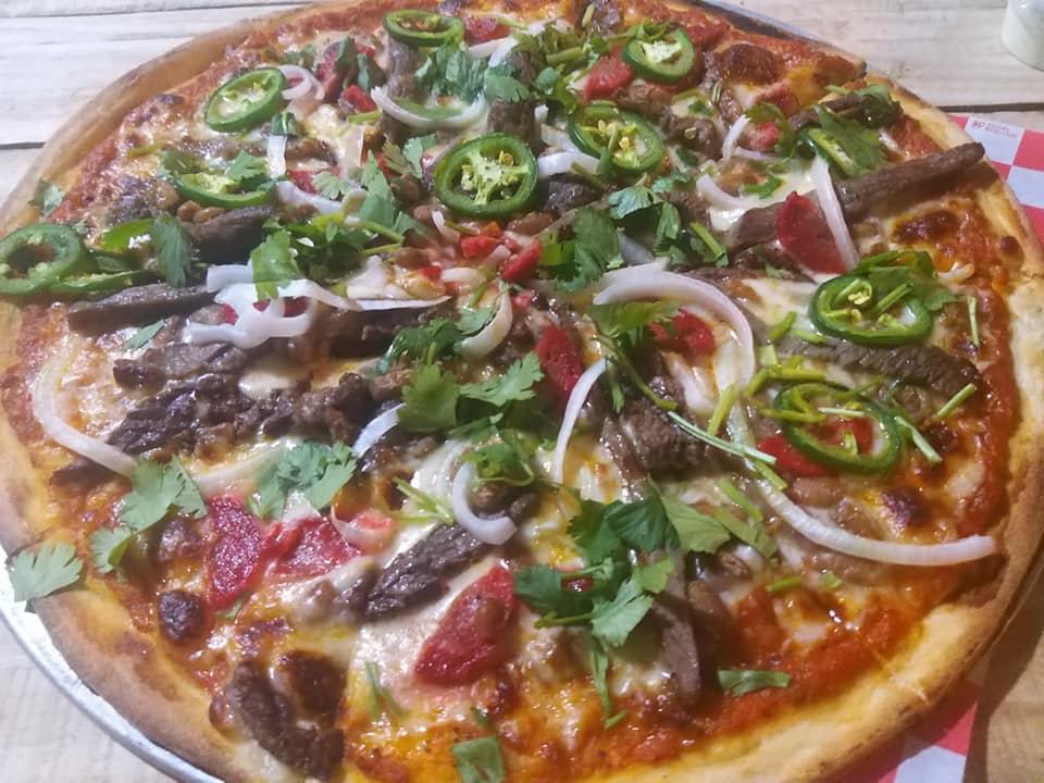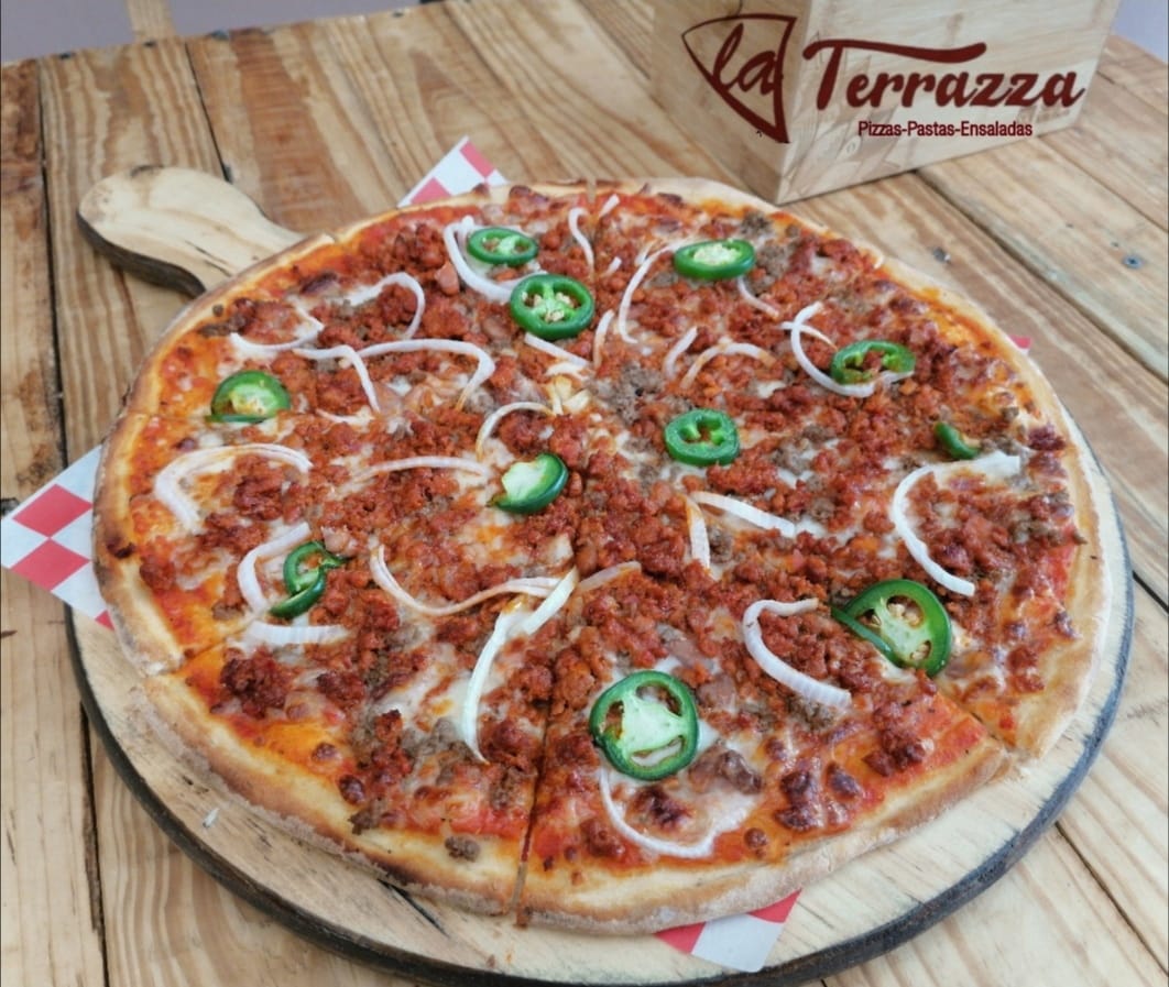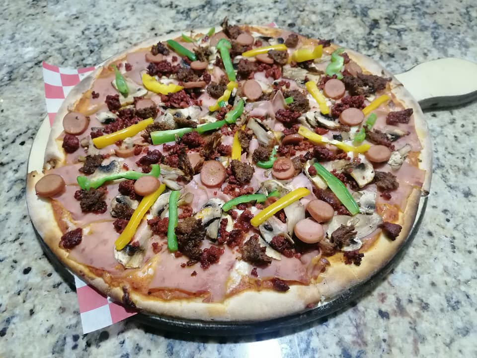 Especialidad de la casa. Champiñón, pimientos, jampon, salchicha, chorizo y chilorio.
