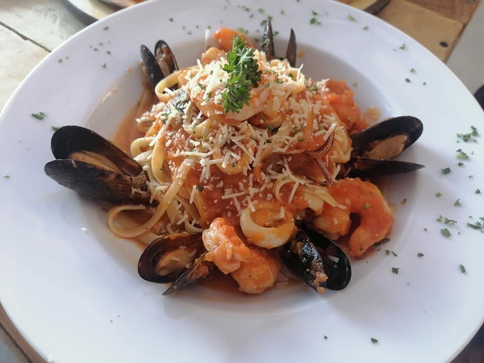 Camarón, calamar, mejillones con un toque de chile de árbol y ajo.