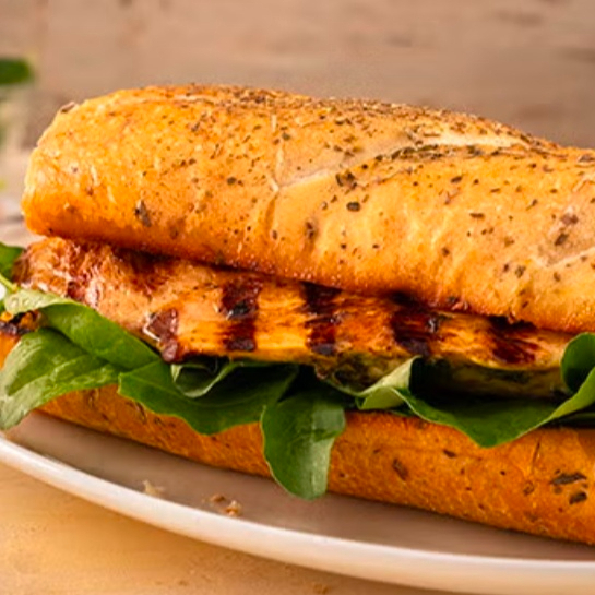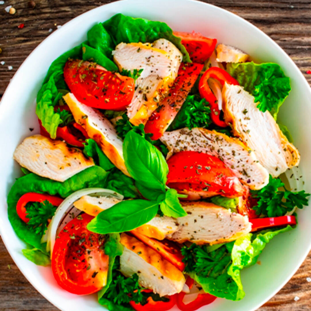 Pechuga de pollo asada, lechuga italiana, jitomate, cebolla morada, pepino, salpimentado y aderezo a elegir.