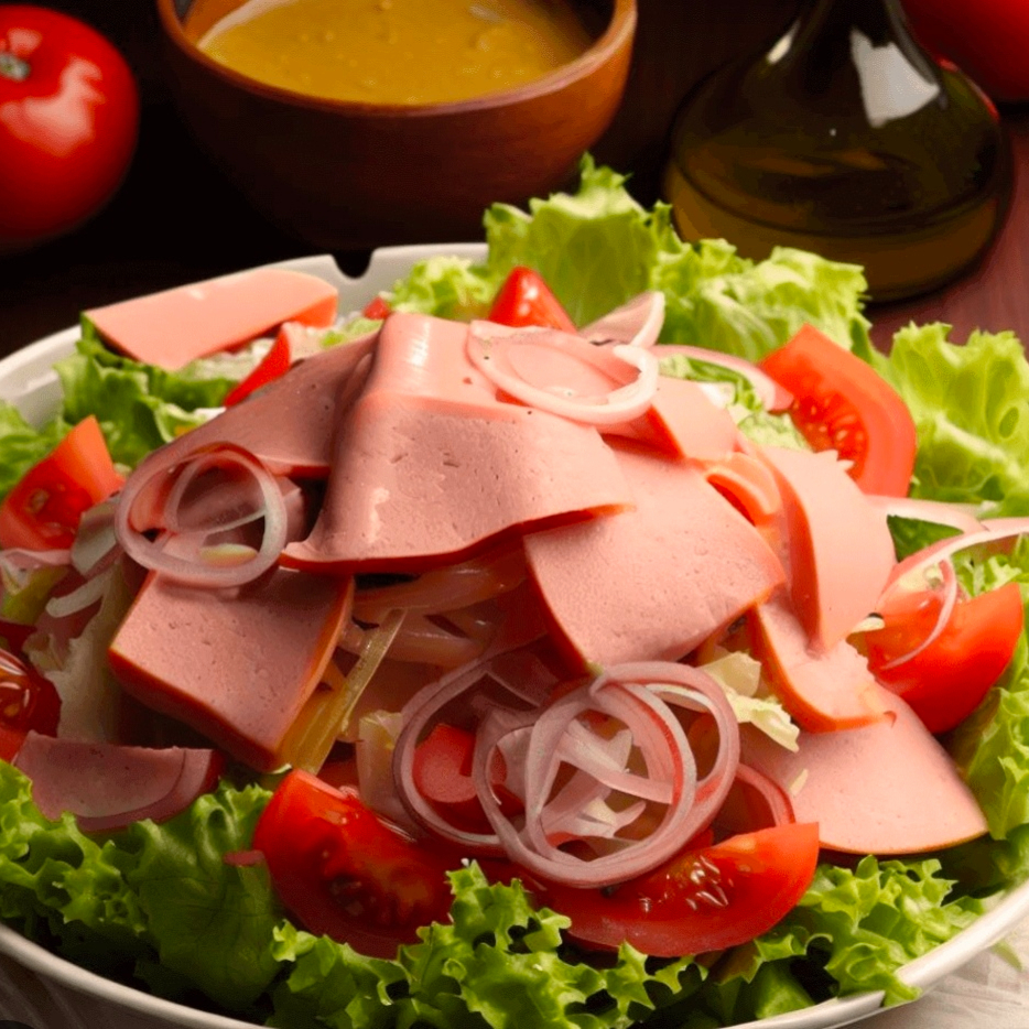 Jamón de pierna, lechuga italiana, jitomate, cebolla morada, pepino, aceituna, aderezo a elegir.