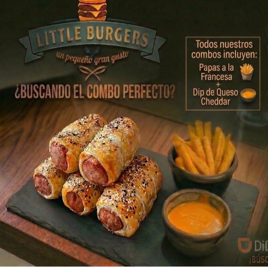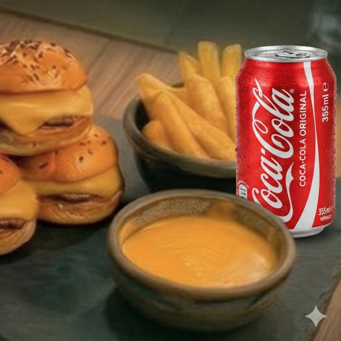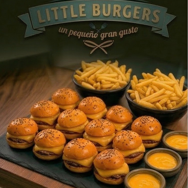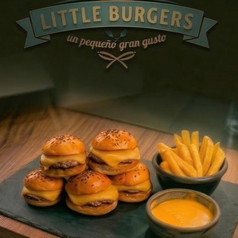 12 mini chees burgers + 300 gr papas a la francesa + dip de queso cheddar