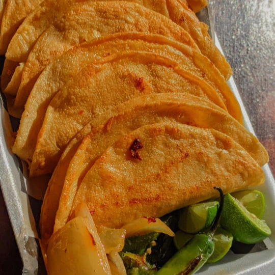 Taco dorado con doble tortilla de maíz crujientes. Perfectos para el antojo.